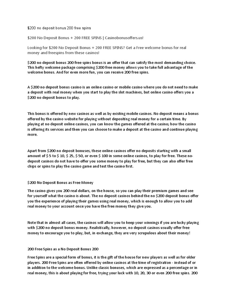 200 No Deposit Bonus 200 Free Spins Pdf Slot Machine Leisure